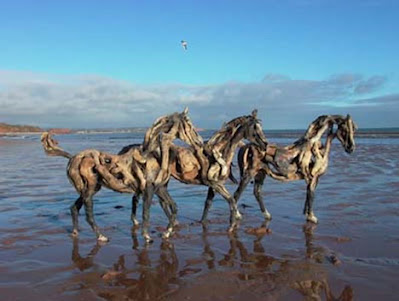 Os cavalos da escultora britânica Heather Jansch surpreendem logo à primeira vista. A principal matéria-prima de Jansch é a madeira, principalmente toras, tocos e pedaços recolhidos na praia. É por isso que as esculturas chamam tanto a atenção. Velhos pedaços do que um dia foram árvores ganham vida nas mãos da artista. A impressão é de que eles imploravam para serem transformados em obras de arte. Apesar de fazer esculturas com outras matérias-primas, nenhuma se compara aos seus rústicos e belos cavalos. Clique aqui para conhecer o trabalho completo de Jansch.